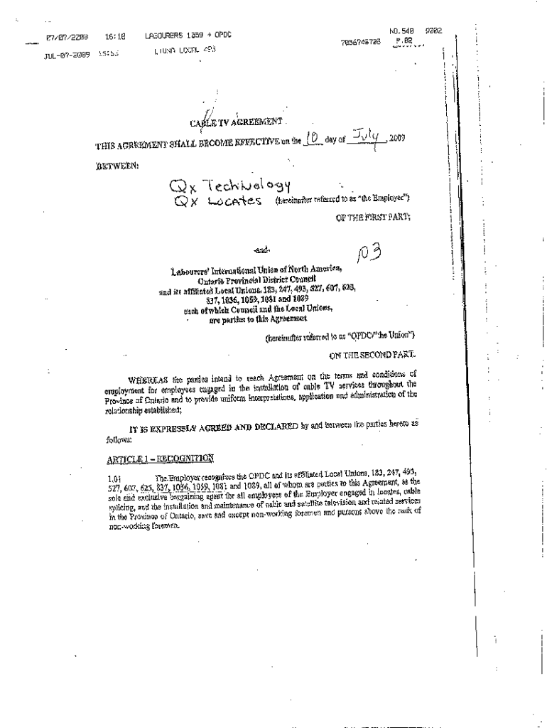 07/07 /2009 JUL07::El19i6:i8 15:!:;3LABOURERS 10597NO. S40OPDCL ! RNA LOCAL \'.? J0002P.0270567clG728!iIIlIc1\'v ARE\'ISME NT.\' (LA. Day of ::JV t this Agreement S.A.\'LL :BECOME EMC TLE on the,2009:6ETW:tn:By.