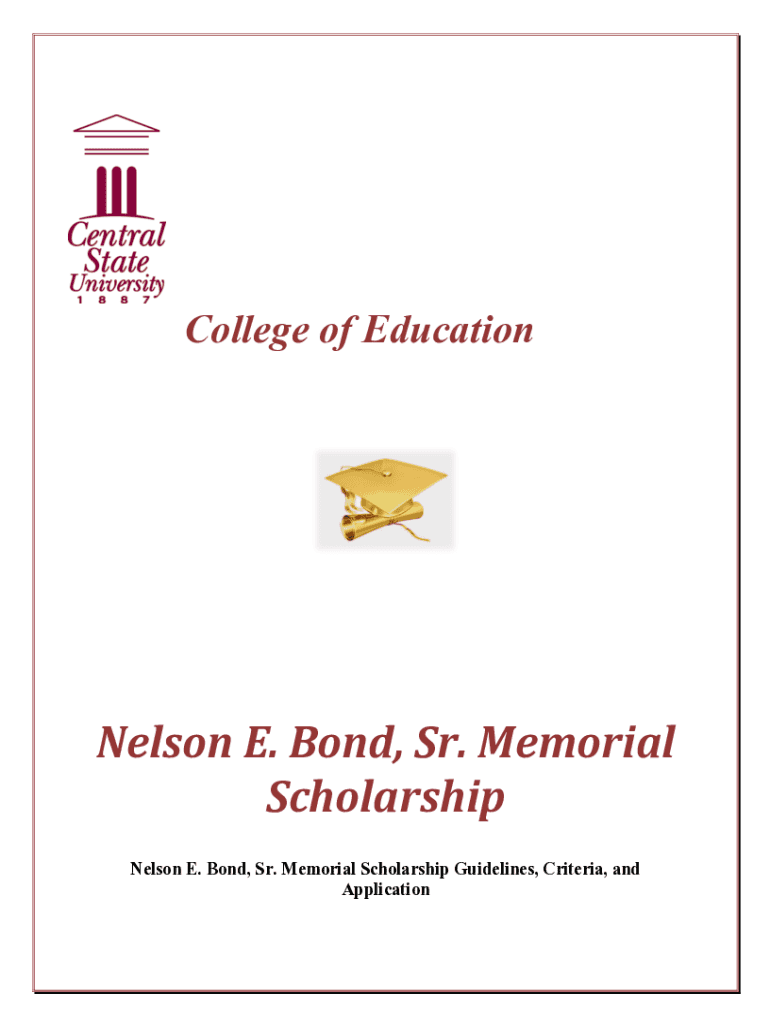 Get the free Nelson E. Bond, Sr. Memorial Scholarship - Central State University