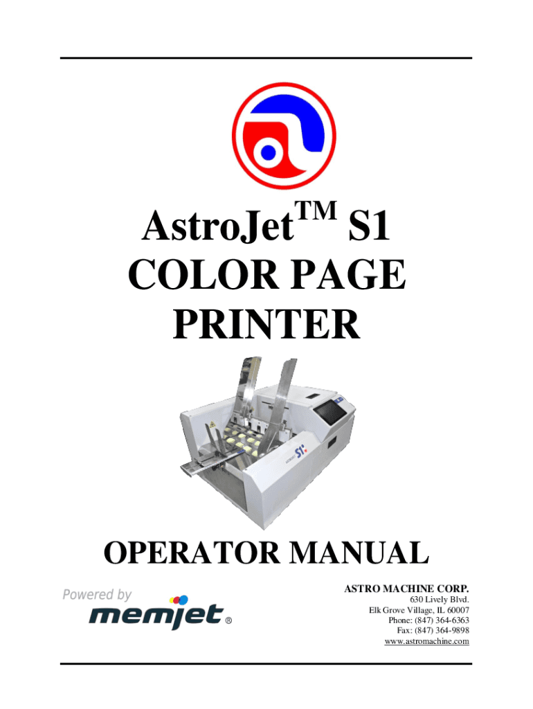 Get the free ASTRO MACHINE ASTROJET S1 PRINTER OPERATOR'S MANUAL