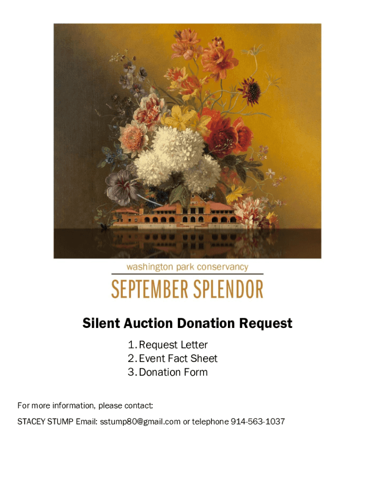 Silent Auction Donation Request 1. Request Letter 2. Event Fact Sheet 3. Donation Form For more information, please contact: STACEY STUMP Email: sstump80@gmail.com or telephone 9145631037June 2022Dear