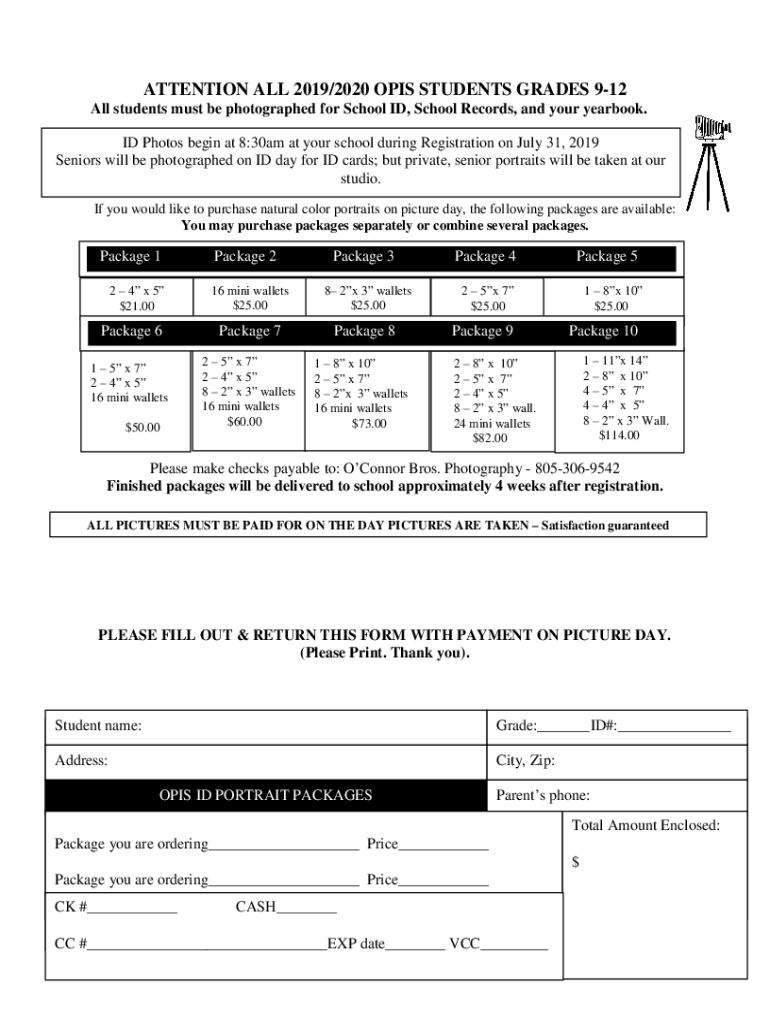 ATTENTION ALL 2019/2020 OTIS STUDENTS GRADES 912 All students must be photographed for School ID, School Records, and your yearbook. ID Photos begin at 8:30am at your school during Registration on