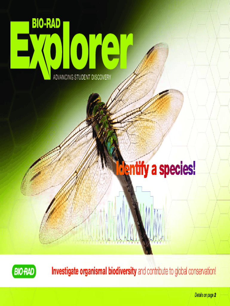 BIORADADVANCING STUDENT DISCOVERYIdentify a species! Investigate organismal biodiversity and contribute to global conservation! Details on page 2New and Improved DNA Barcoding Kits identify a species