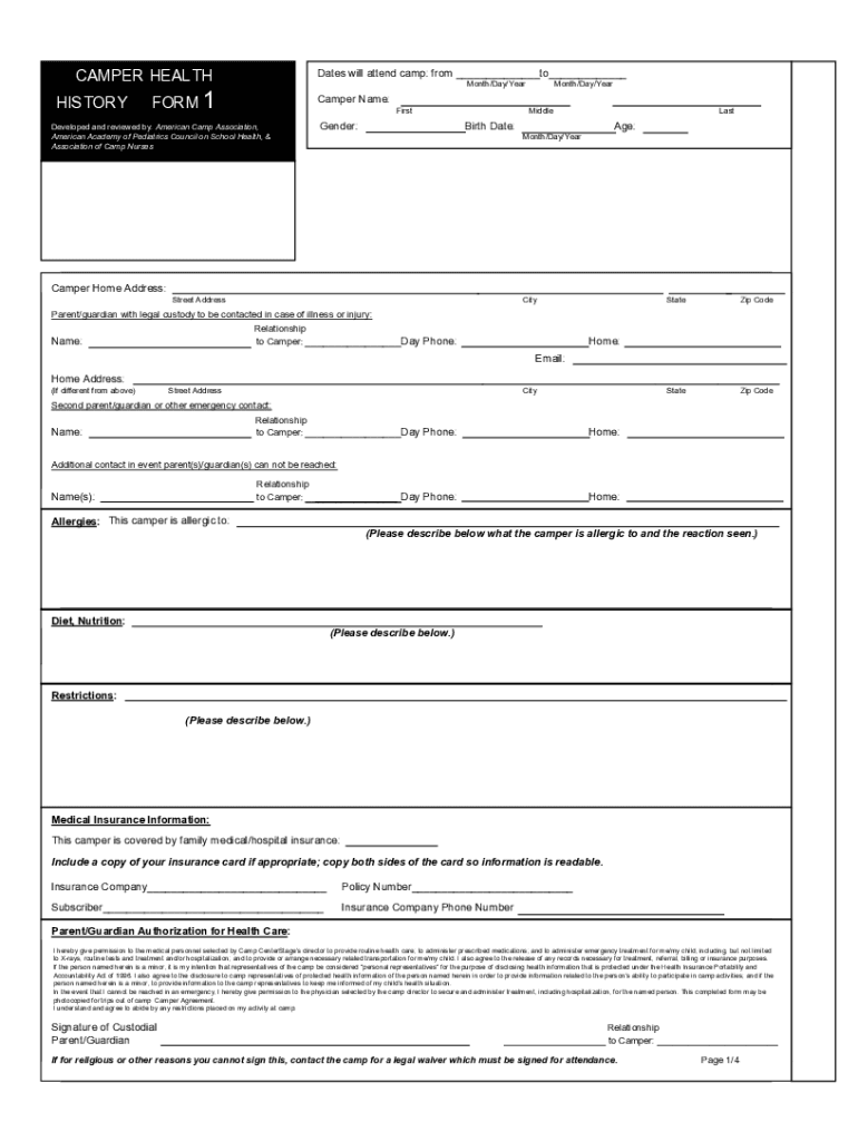 Get the free campwyandot.orgwp-contentuploadsCAMPER HEALTH Dates will attend camp: from to HISTOR...