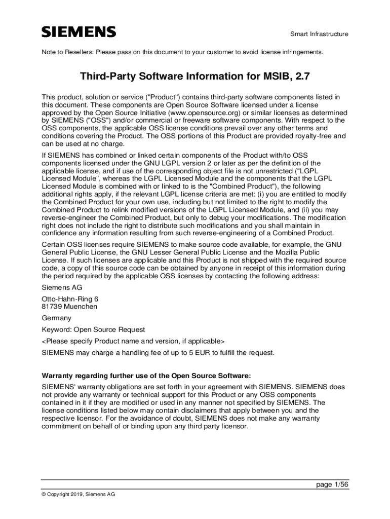 Get the free Siemens Third-Party Software disclosure document
