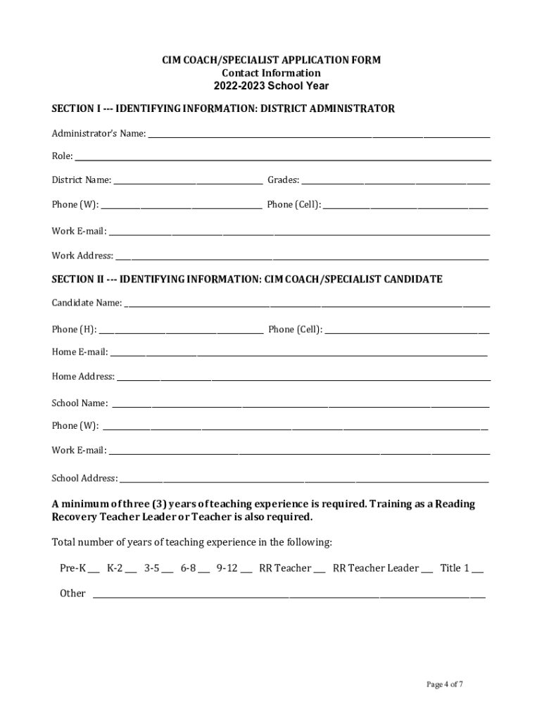 Partnerships in ComprehensiveLiteracy Model (PCL)Application for the Comprehensive Intervention Model (CIM) Coach/Specialist for Reading Recovery Trained Educators 20222023 School Year Application