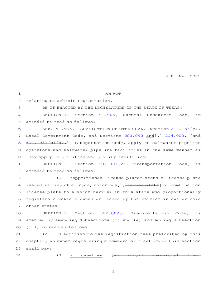 2relating to vehicle registration.3BE IT ENACTED BY THE LEGISLATURE OF THE STATE OF TEXAS:4SECTIONA1.AASection5