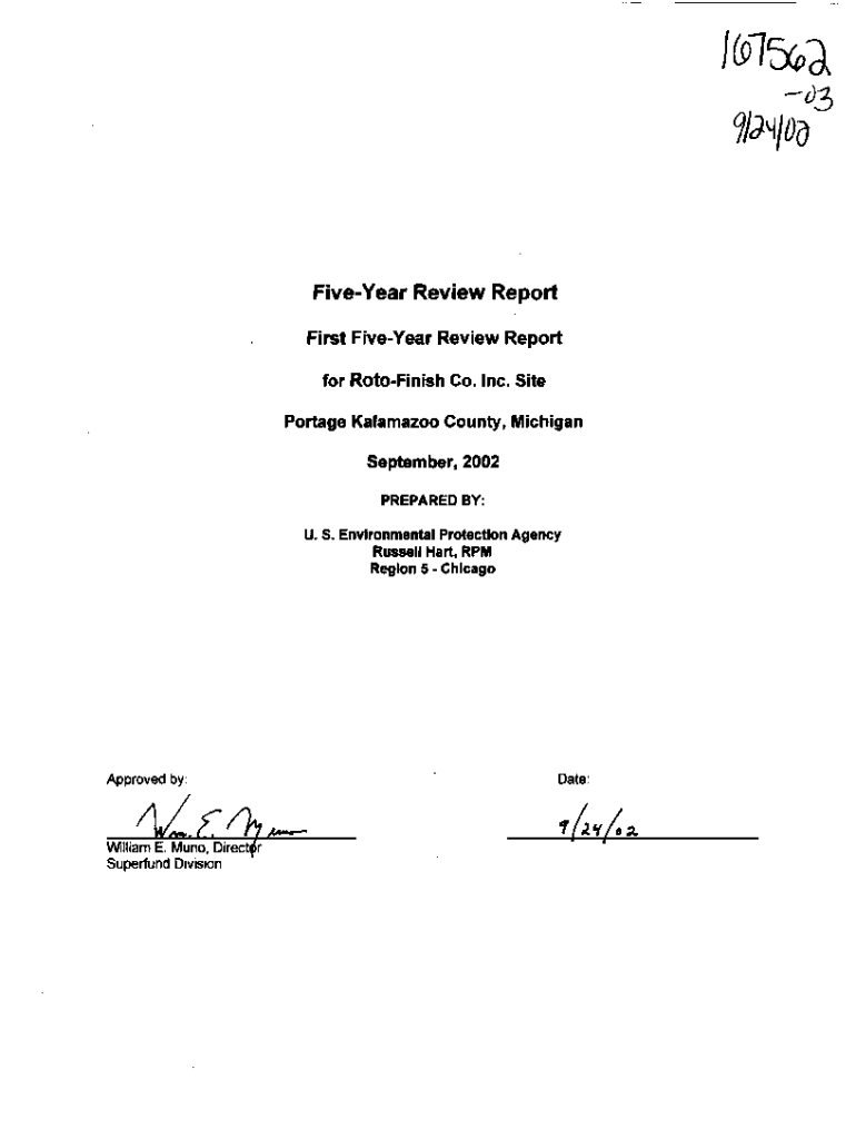 Get the free FIVE YEAR REVIEW REPORT (SIGNED) - ROTO FINISH CO INC