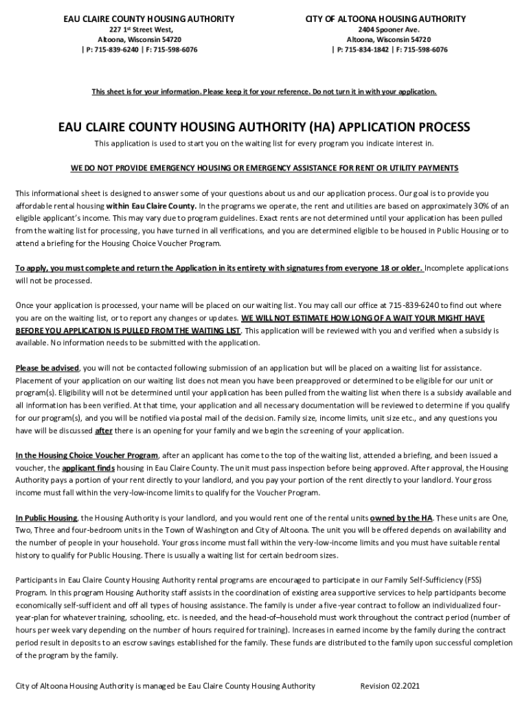 Get the free EAU CLAIRE COUNTY HOUSING AUTHORITY (HA) APPLICATION ...
