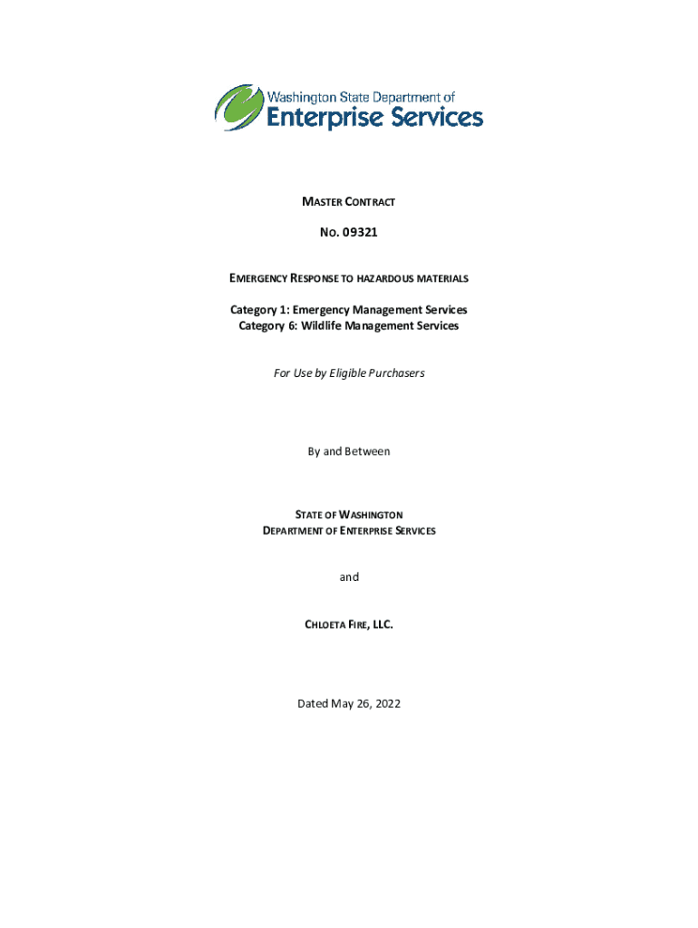 MASTER CONTRACT NO. 09321 EMERGENCY RESPONSE TO HAZARDOUS MATERIALS Category 1: Emergency Management Services Category 6: Wildlife Management Services For Use by Eligible Purchasers and BetweenSTATE