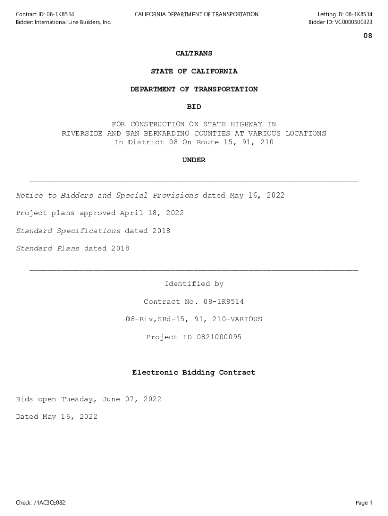 Bidder: International Line Builders, Inc. CALIFORNIA DEPARTMENT OF TRANSPORTATIONLetting ID: 081K8514