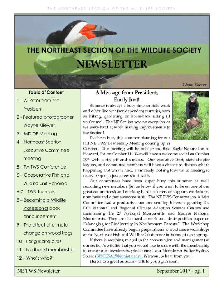 THE NORTHEAST SECT ION OF THE WI DLI FE SCI TITHE NORTHEAST SECTION OF THE WILDLIFE SOCIETYNEWSLETTER Wayne KliewerTable of Content 1 A Letter from the President 2 Featured photographer: Wayne Viewer