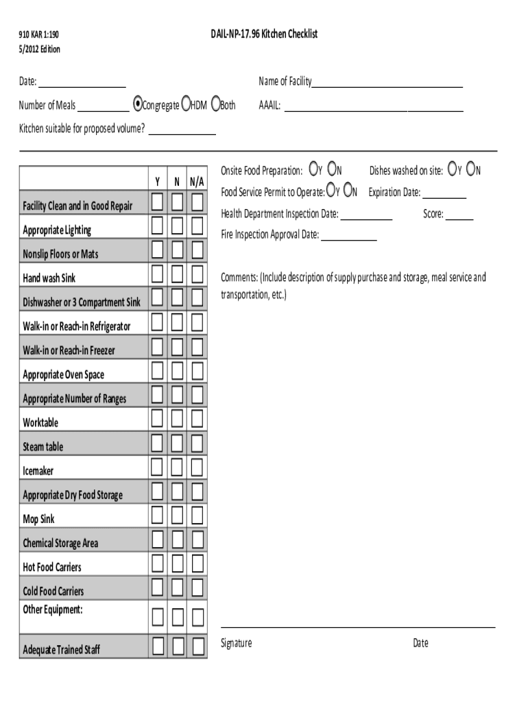 DAILNP17.96 Kitchen Checklist910 CAR 1:190