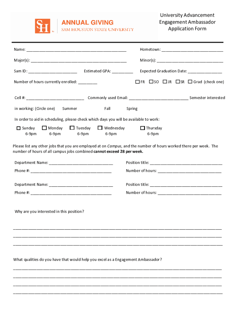 Get the free University Advancement Engagement Ambassador Application Form - sam.edu