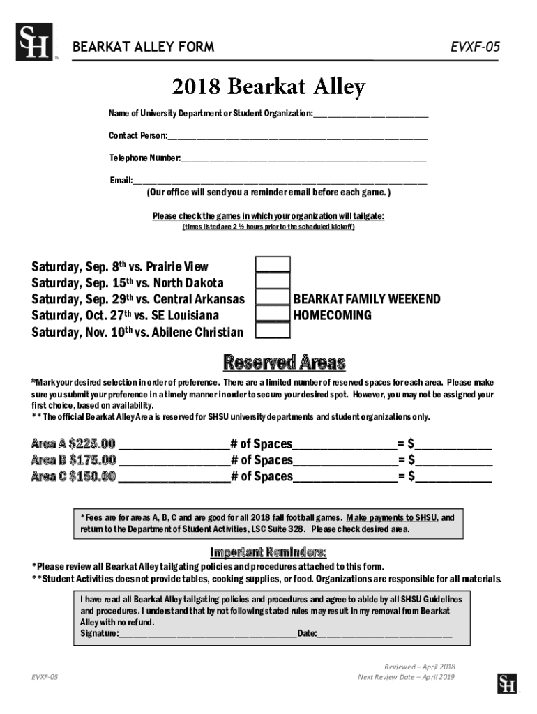 Get the free bearkat alley form evxf-05