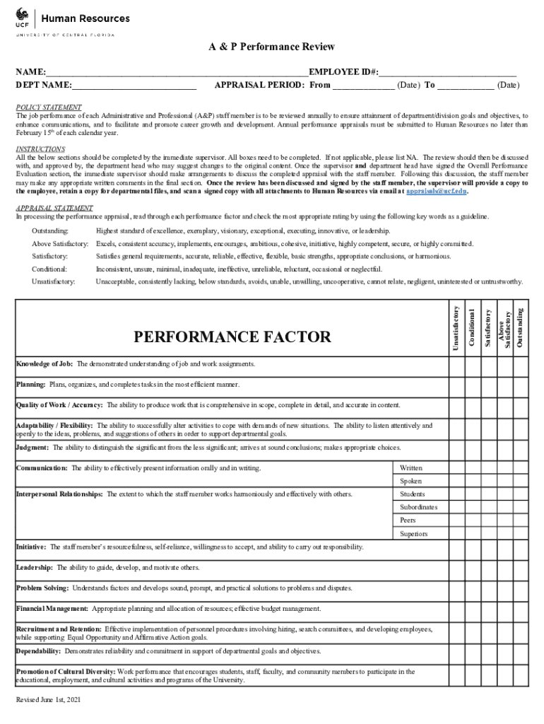 Get the free A & P Performance Review - University of Central Florida - hr ucf