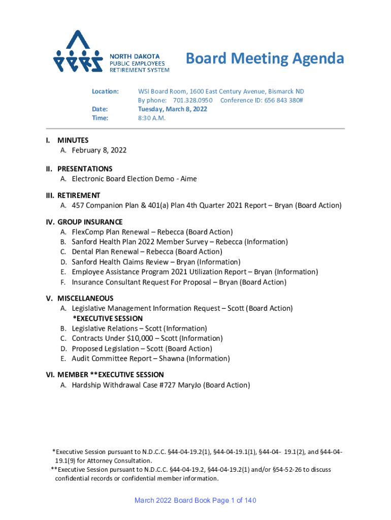 The NDPERS Board of Trustees is a governing body responsible for overseeing the North Dakota Public Employees Retirement System.
