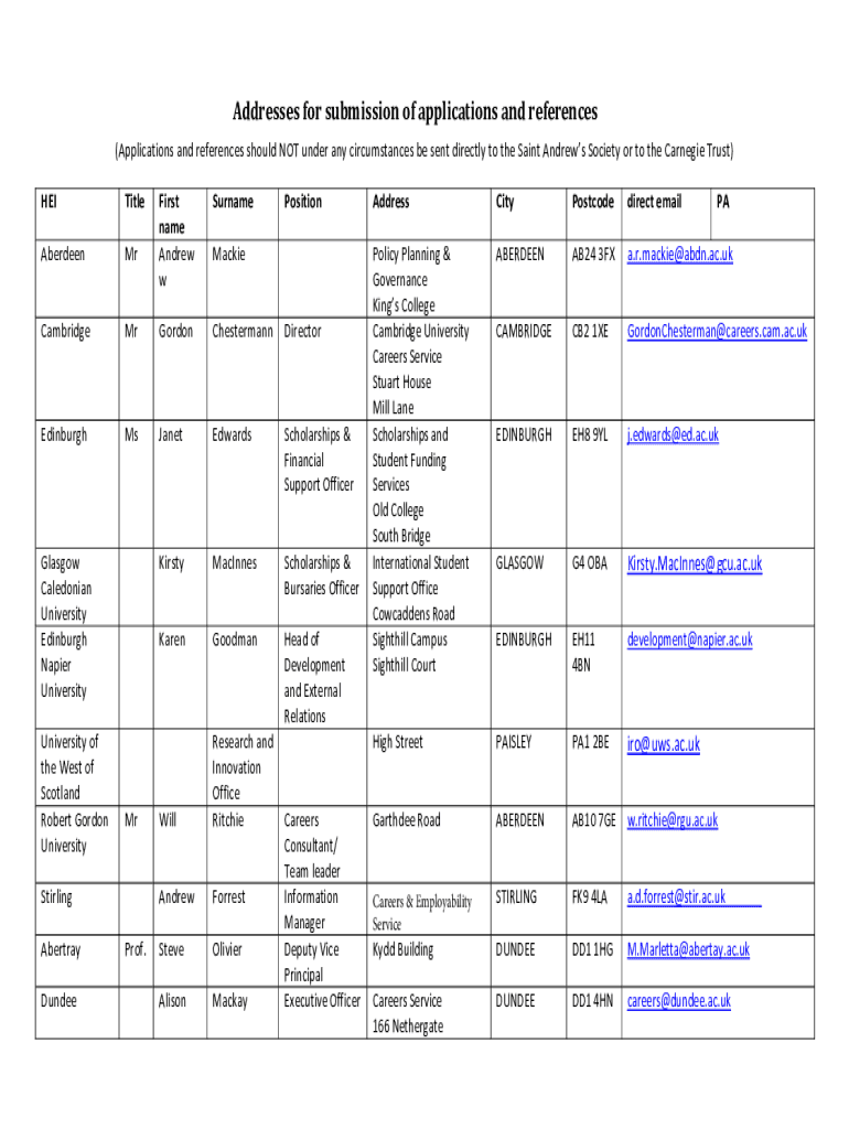 (Applications and references should NOT under any circumstances be sent directly to the Saint Andrews Society or to the Carnegie Trust)