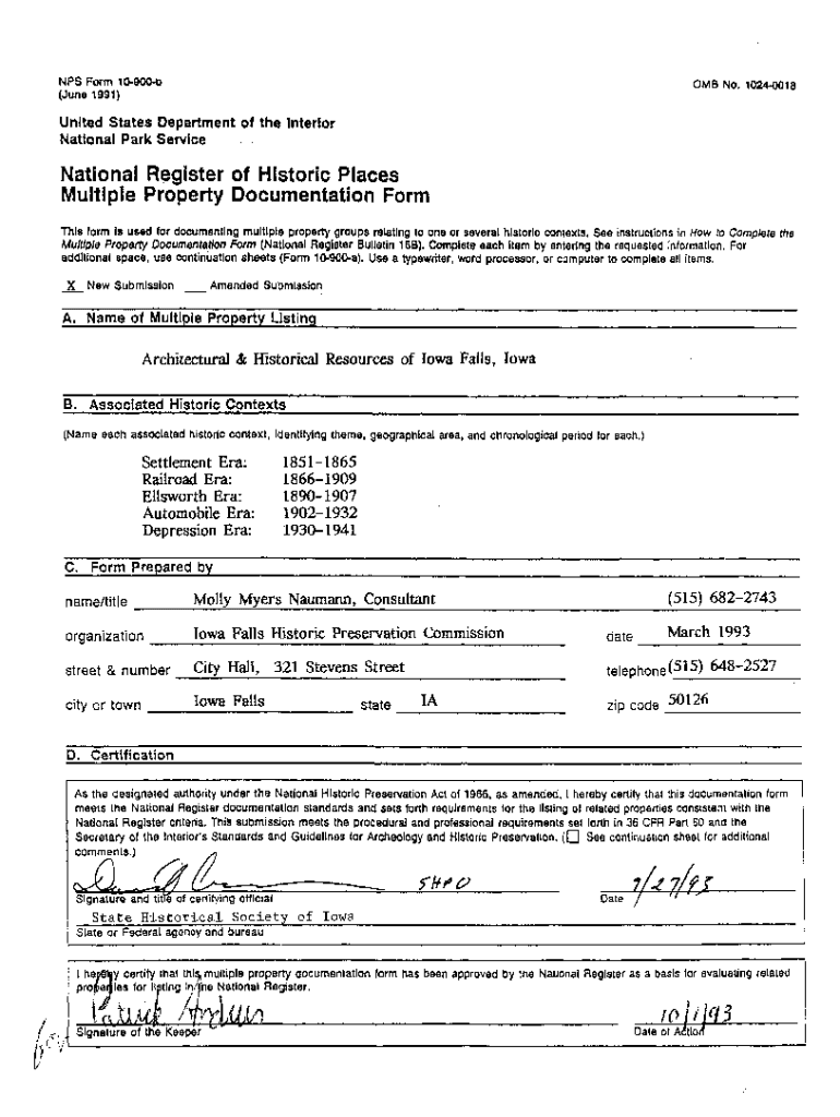 NPS Form 10900b (June 1991).0 MB No. 10240018United States Department of the Interior National Park ServiceNational Register of Historic Places Multiple Property Documentation Form This form is used