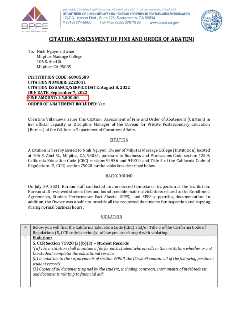 BUSINESS, CONSUMER SERVICES AND HOUSING AGENCY GAVIN NEWSOM, GOVERNORDEPARTMENT OF CONSUMER AFFAIRS BUREAU FOR PRIVATE POSTSECONDARY EDUCATION1747 N. Market Blvd., Suite 225, Sacramento, CA 95834