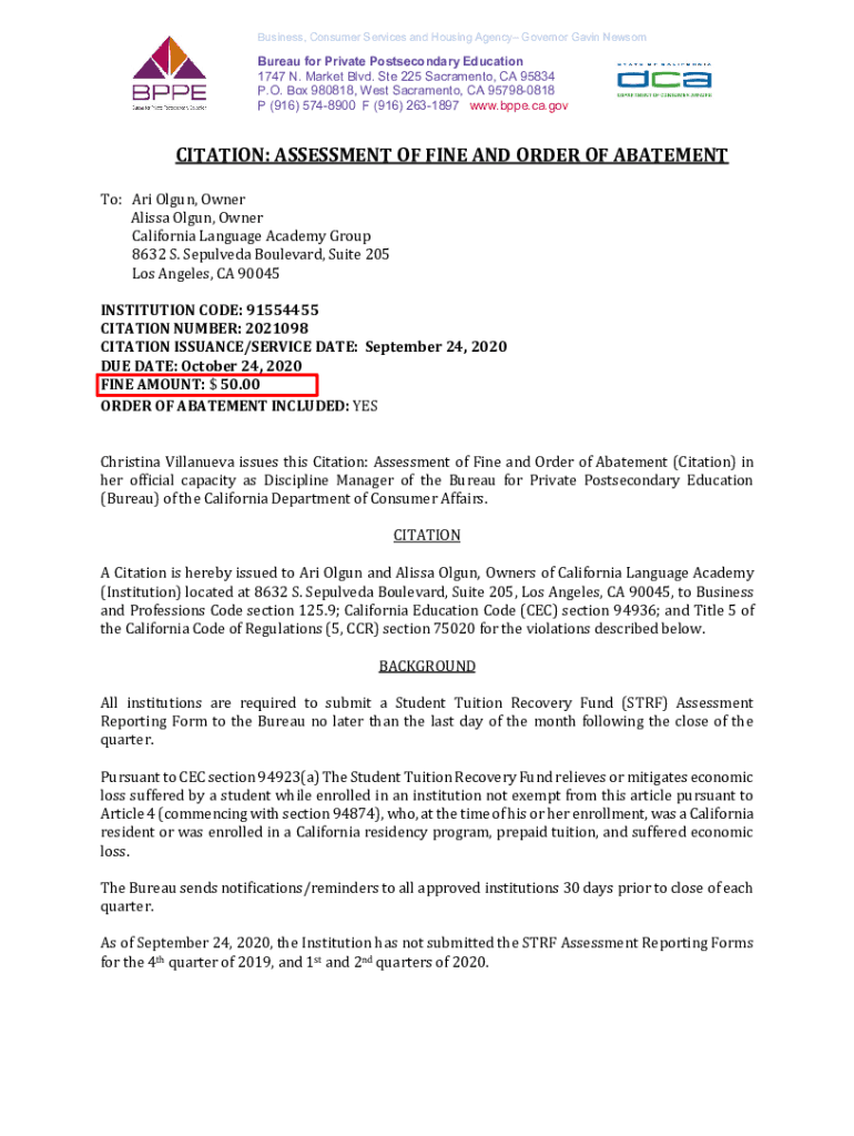 Get the free Bureau for Private Postsecondary Education -California Language Academy Group - Asse...