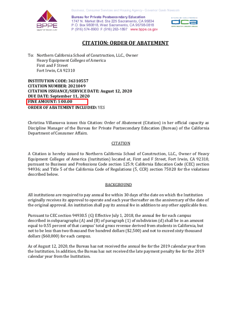 Business, Consumer Services and Housing Agency Governor Gavin NewsomBureau for Private Postsecondary Education 1747 N. Market Blvd. Ste 225 Sacramento, CA 95834 P.O. Box 980818, West Sacramento, CA