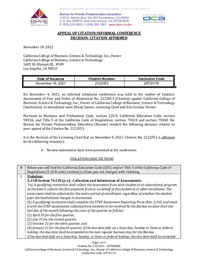 Get the free Bureau for Private Postsecondary Education - California Col