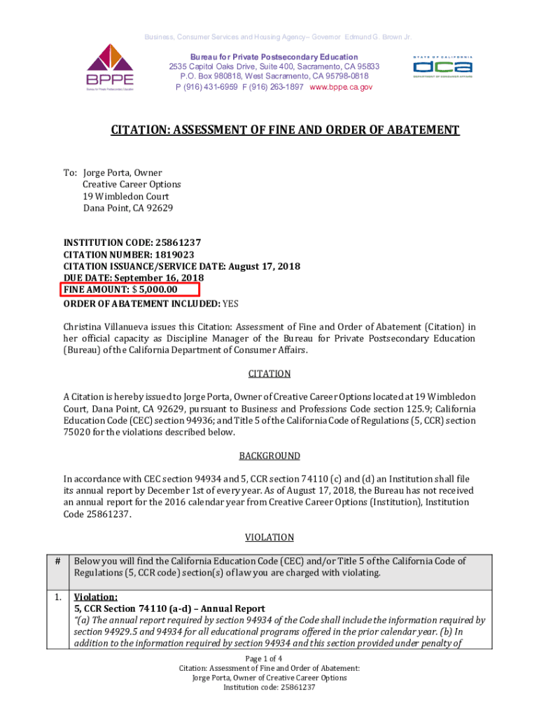 Business, Consumer Services and Housing Agency Governor Edmund G. Brown Jr. Bureau for Private Postsecondary Education 2535 Capitol Oaks Drive, Suite 400, Sacramento, CA 95833 P.O. Box 980818, West