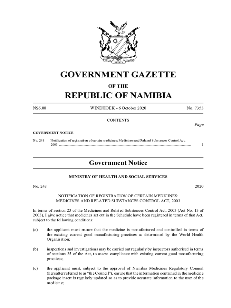 N$6.00WINDHOEK 6 October 2020CONTENTSNo. 7353PageGOVERNMENT NOTICE
