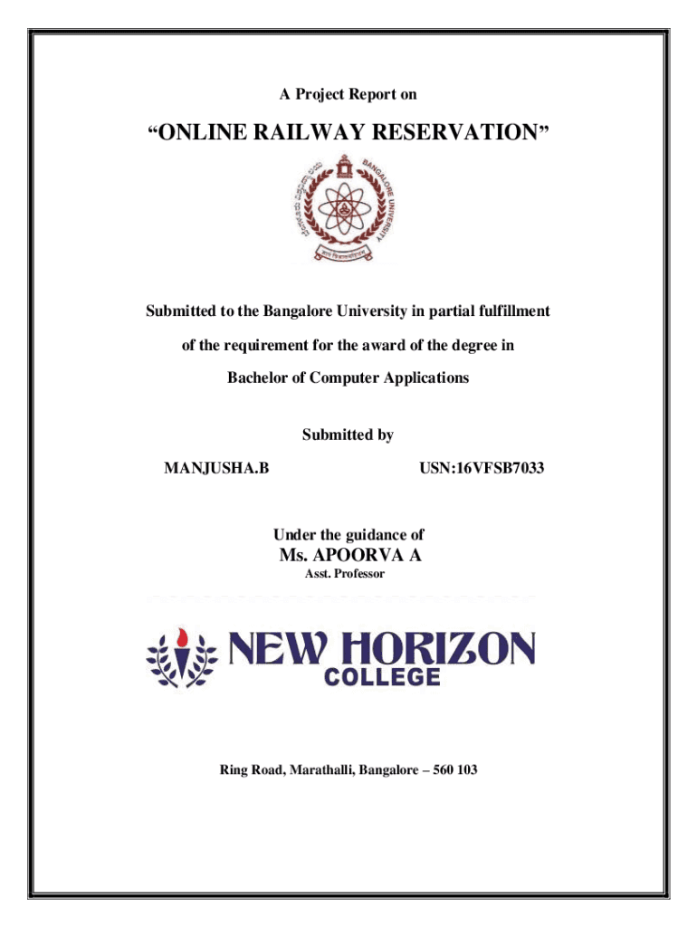A Project Report online RAILWAY RESERVATIONSubmitted to the Bangalore University in partial fulfillment of the requirement for the award of the degree in Bachelor of Computer ApplicationsSubmitted