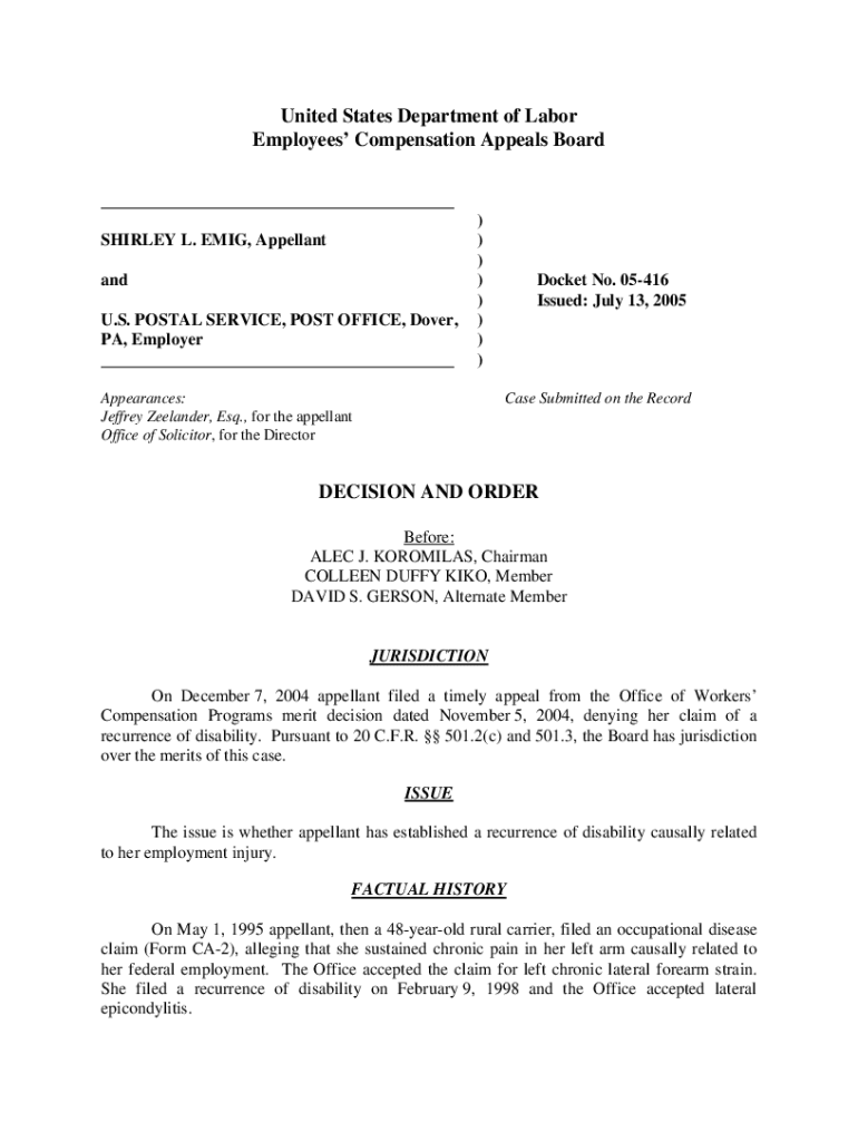 Get the free 05-0416: SHIRLEY L. EMIG and U.S. POSTAL SERVICE,...
