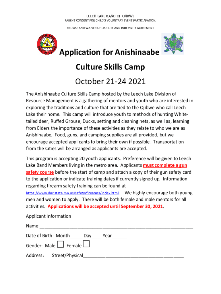 Get the free Application for Anishinaabe Culture Skills Camp October 21 ...