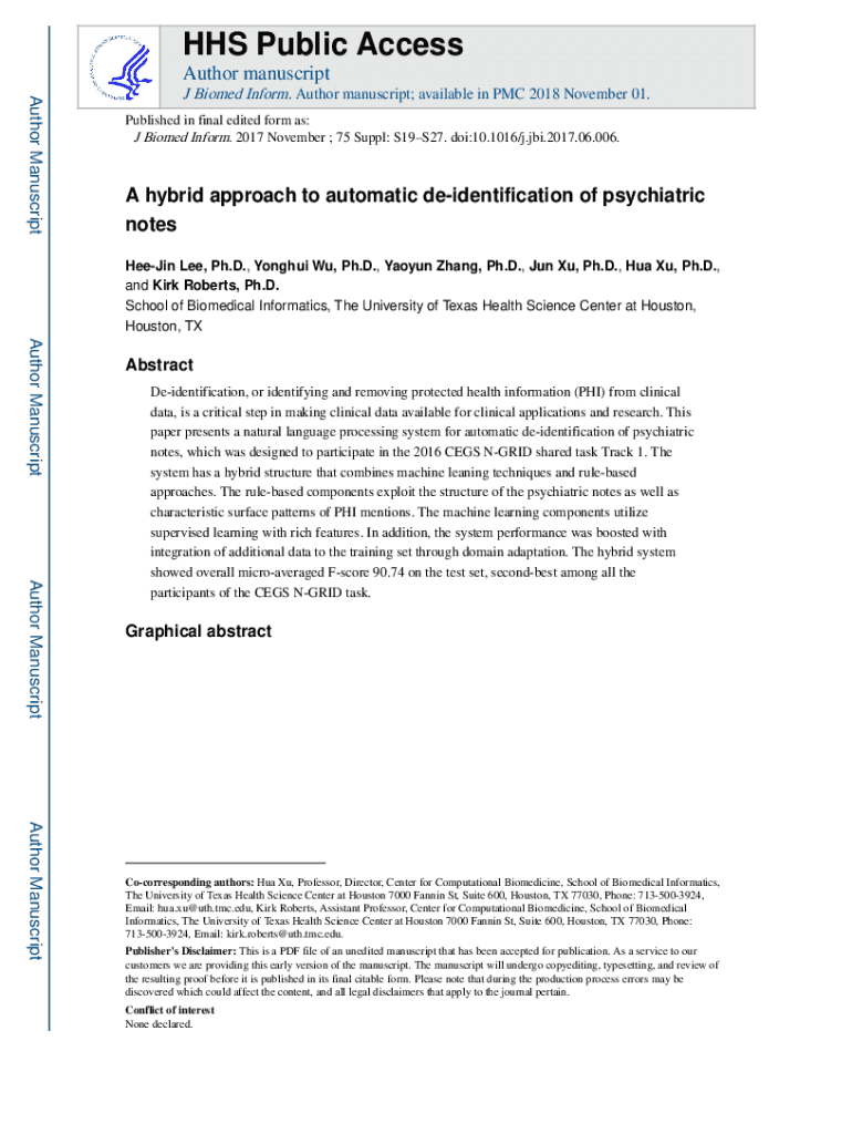 Get the free A hybrid approach to automatic de-identification of psychiatric ...
