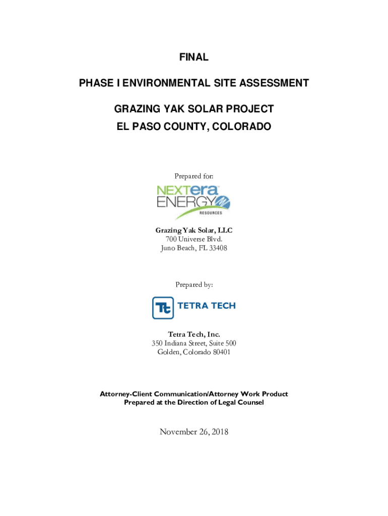 EL PASO COUNTY, COLORADOPrepared for:Grazing Yak Solar, LLC