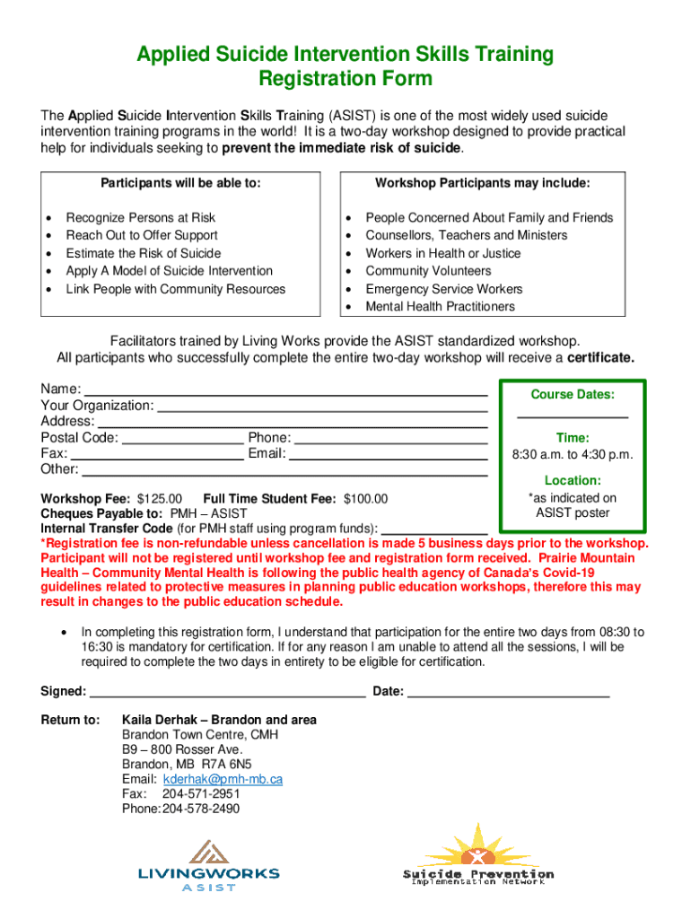 Applied Suicide Intervention Skills Training Registration Form The Applied Suicide Intervention Skills Training (ASSIST) is one of the most widely used suicide intervention training programs in the