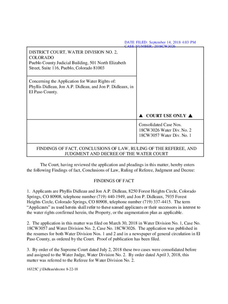 DATE FILED: September 14, 2018 4:03 PM CASE NUMBER: 2018CW3026DISTRICT COURT, WATER DIVISION NO. 2, COLORADO Pueblo County Judicial Building, 501 North Elizabeth Street, Suite 116, Pueblo, Colorado