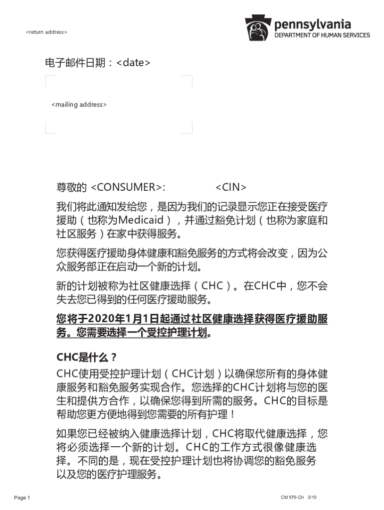 Return addressdatemailing address CONSUMER:IN Medicaid CHC