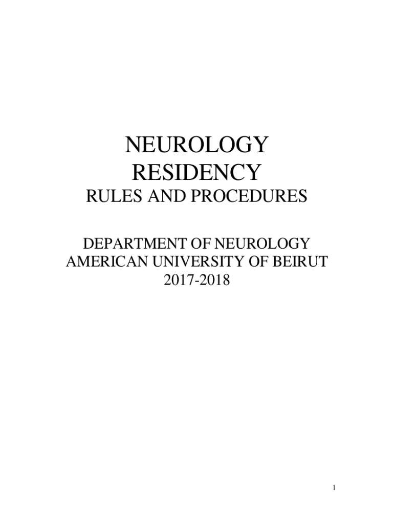 NEUROLOGY RESIDENCY RULES AND PROCEDURES DEPARTMENT OF NEUROLOGY AMERICAN UNIVERSITY OF BEIRUT 201720181FOREWORD This Neurology Residency Rules and Procedures handbook is intended as a handy reference