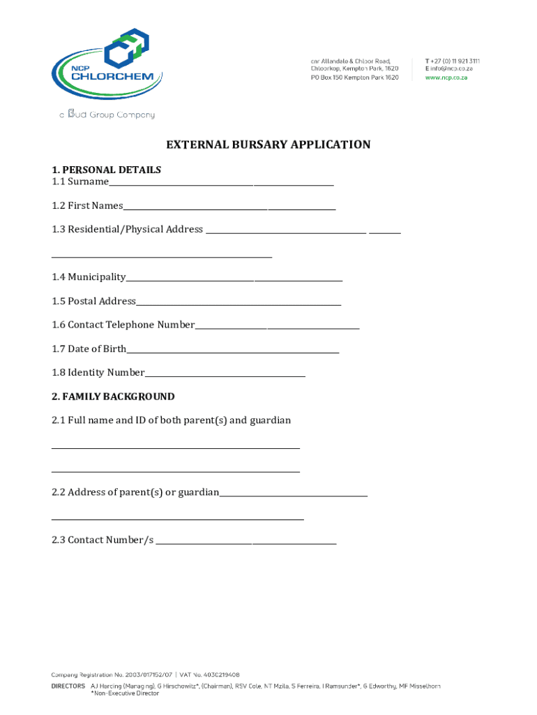 Bursary Application Form External is not the form you're looking for?Search for another form here.