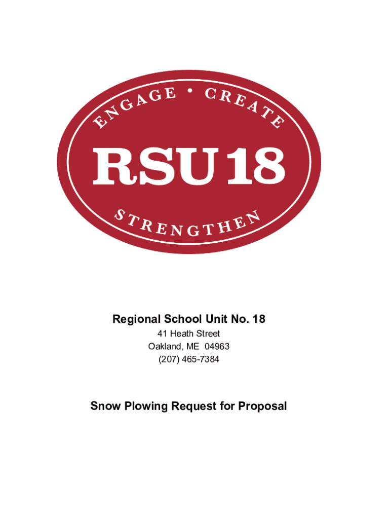 Regional School Unit No. 18 41 Heath Street Oakland, ME 04963 (207) 4657384Snow Plowing Request for ProposalRequest for Proposal (RFP) Table of ContentsInstructionsPage 3Scope of Work Page 3Information