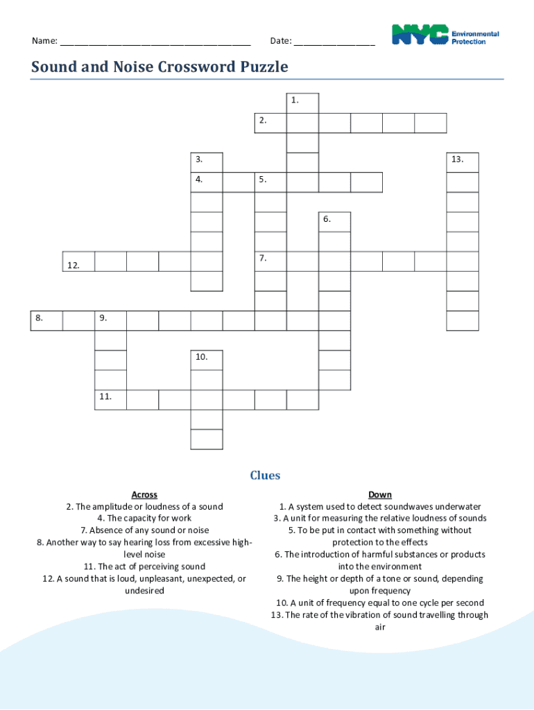 Name: ___Date: ___Sound and Noise Crossword Puzzle 1. 2. O3. 4.12. N5.9.AIAHRXBP6.EOOL7.IMLYE13.ONCE U NEXT I10. T C 11.FIRM CR MUNU8.LOVE EARN INGE Clues Across 2. The amplitude or loudness of a
