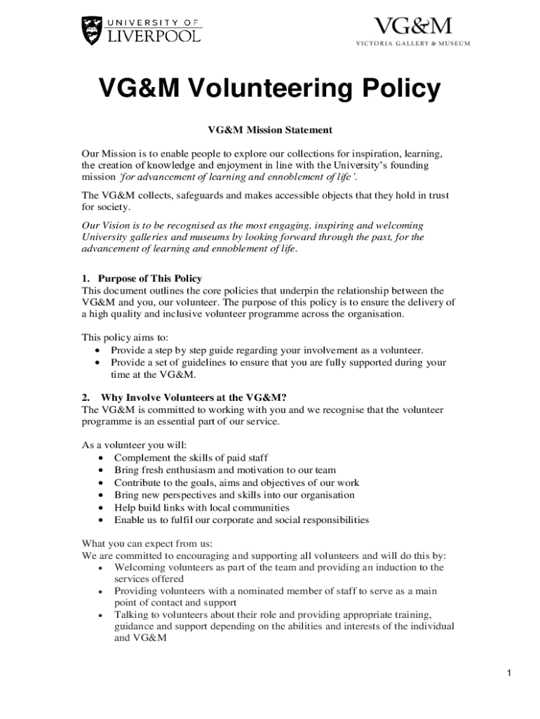 Get the free VG&M Volunteering Policy - The University of Liverpool