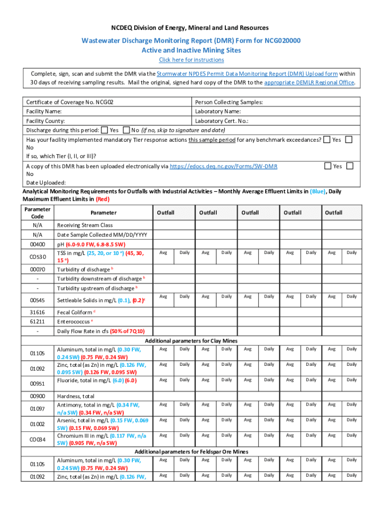 NC DEQ Division of Energy, Mineral and Land ResourcesWastewater Discharge Monitoring Report (DMR) Form for NCG020000