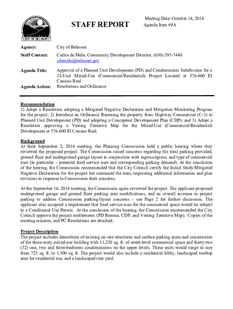 Agenda Item #9AAgency:City of BelmontStaff Contact:Carlos de Melo, Community Development Director, (650) 5957440