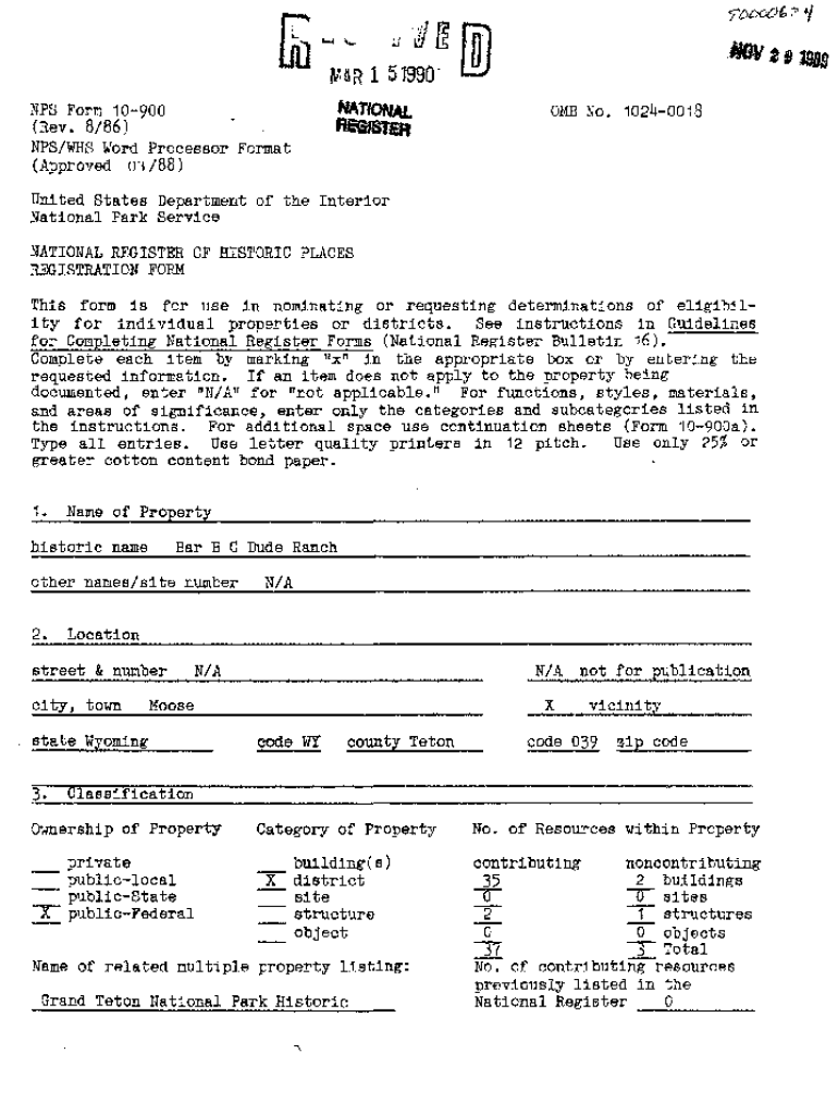 (Approved 03/88)REGISTER0MB No. 102^0018United States Department of the Interior