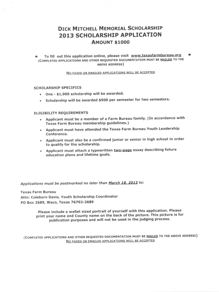 Get the free Scholarship Application - Dick Mitchell Memorial Scholarship