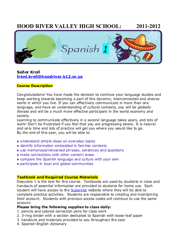 HOOD RIVER VALLEY HIGH SCHOOL:20112012Seor Roll trent.kroll@hoodriver.k12.or.us1 Seer Roll trent.kroll@hoodriver.k12.or.us Course Description Congratulations! You have made the decision to continue