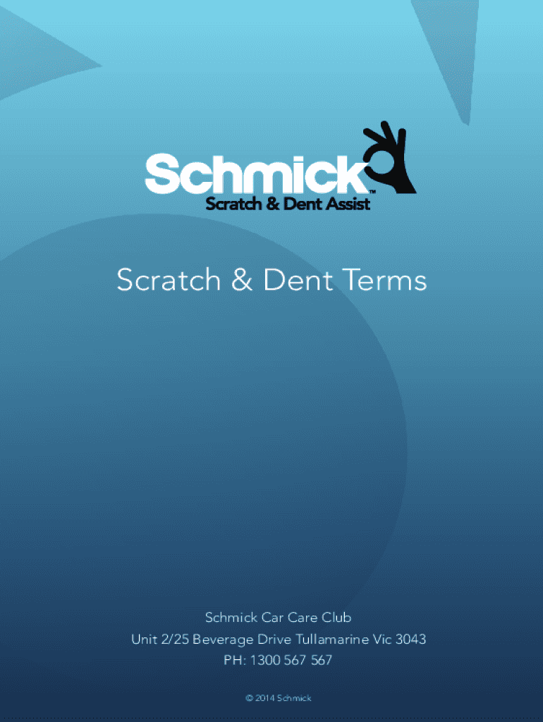 Scratch & Dent TermsSchmick Car Care Club Unit 2/25 Beverage Drive Ultramarine Vic 3043 PH: 1300 567 567 2014 SchmickIndex General Terms and Conditions 3 This Booklet 3 PART ONE 41. Member Benefits