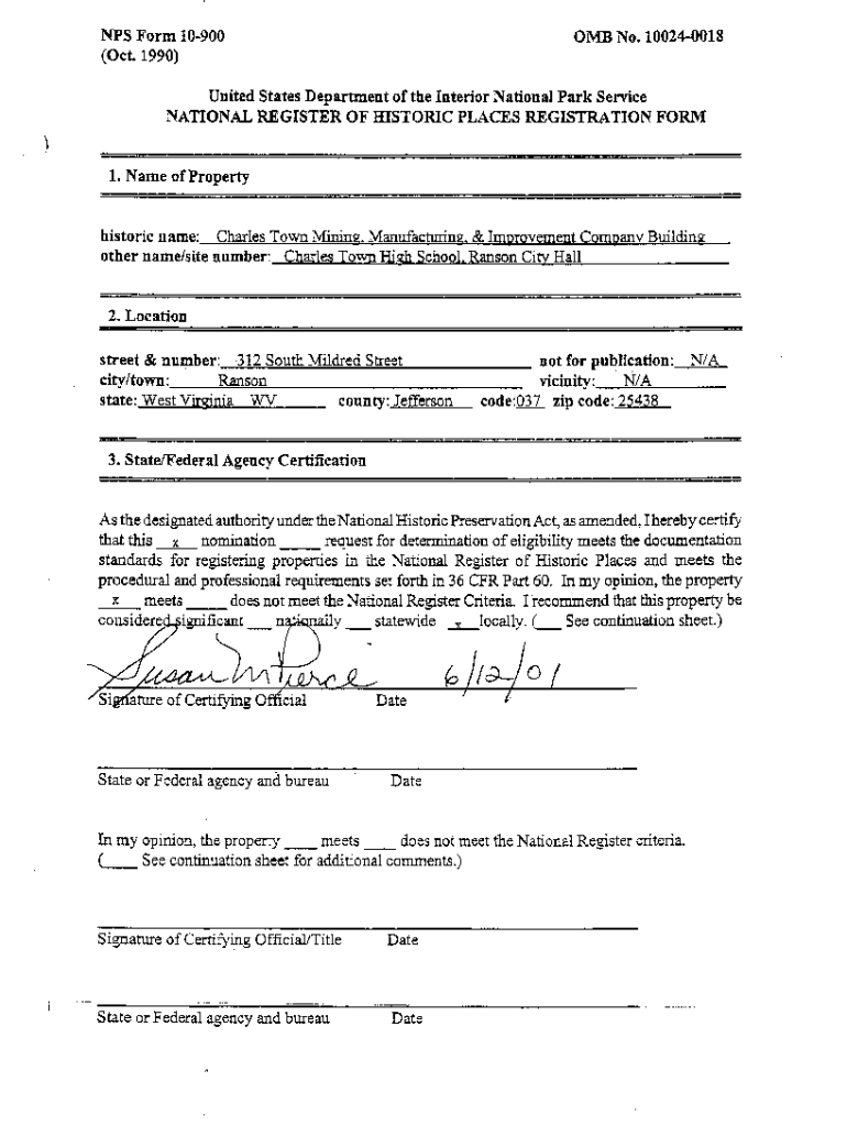 Get the free NPS Form 10-900 OMB No. 10024-0018 United ... - National Park Service