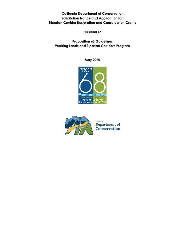 California Department of Conservation Solicitation Notice and Application for: Riparian Corridor Restoration and Conservation Grants Pursuant To Proposition 68 Guidelines Working Lands and Riparian