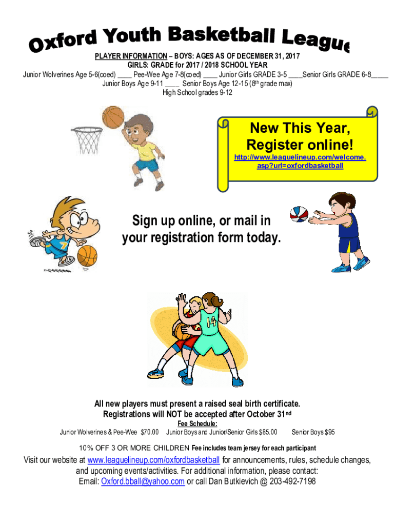 PLAYER INFORMATION BOYS: AGES AS OF DECEMBER 31, 2017, GIRLS: GRADE for 2017 / 2018 SCHOOL YEAR Junior Wolverines Age 56(coed) ___ Peewee Age 78(coed) ___ Junior Girls GRADE 35 ___Senior Girls GRADE